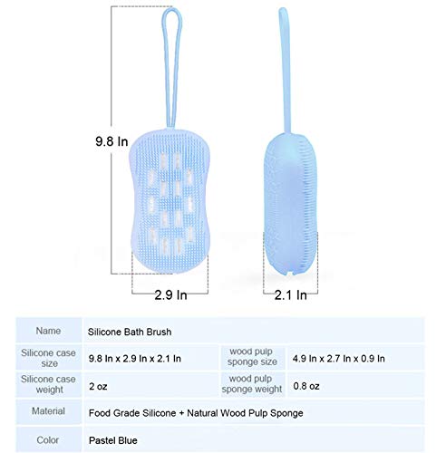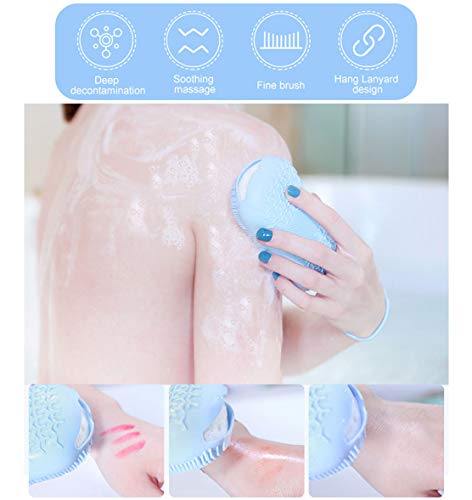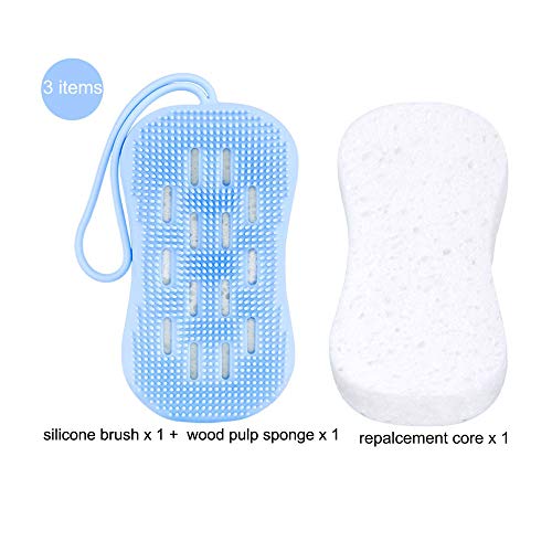 Nobranded - فرشاة حمام من السيليكون الناعم مع إسفنجة ، 2 في 1 منظف وتقشير وتدليك البشرة وتنظيف الوجه وفرشاة مقشر للاستحمام والشعر مع قلب إصلاح للنساء والرجال والأطفال الرطب والجاف (أزرق) â € ¦