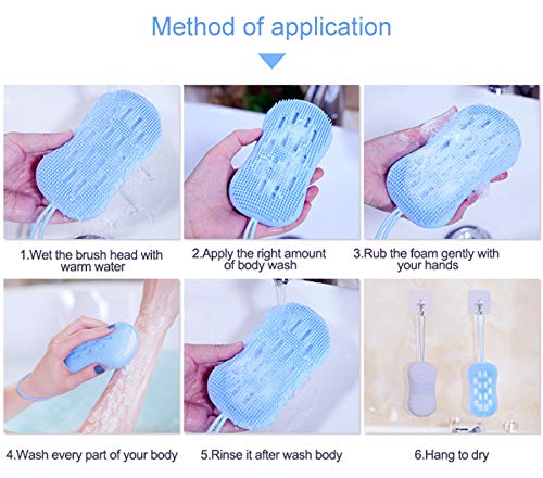- مادة السيليكون بدرجة غذائية: تستخدم الليفة للأطفال وهي مصنوعة من مادة السيليكون الطبيعية الآمنة غذائيًا والإسفنجة. مقاومة للأحماض ويمكن استخدامها مع جل الاستحمام الخاص بك، مناسبة لجميع أنواع البشرة خاصة لمن لديهم بشرة حساسة.
