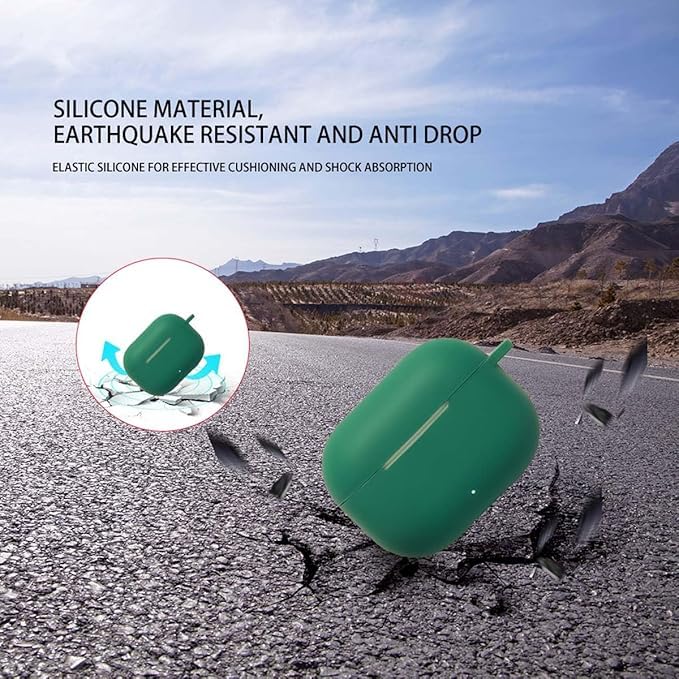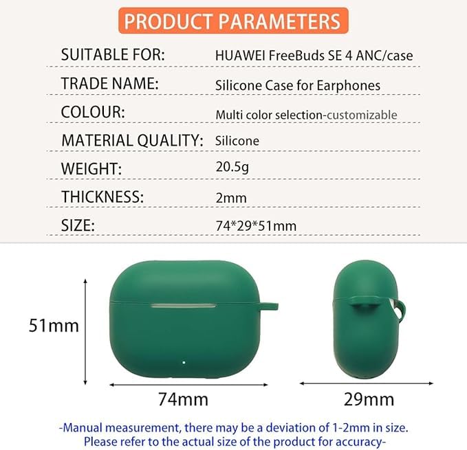 Generic - جراب سيليكون ناعم مع سلسلة مفاتيح لهواوي فري بادز اس اي 4 ايه ان سي، لون اخضر داكن