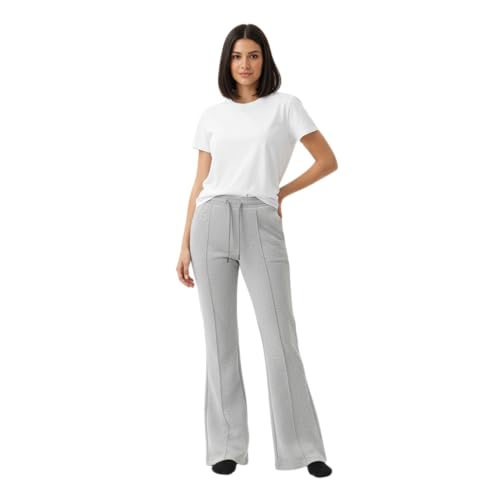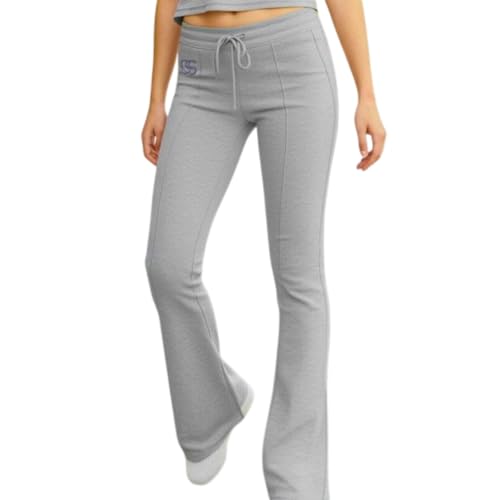 Generic - بنطلون يوجا سوفت ستيبس من قماش جيرسي بخصر مرتفع مع رباط سحب وقصة واسعة من الركبة للنساء، رمادي فاتح