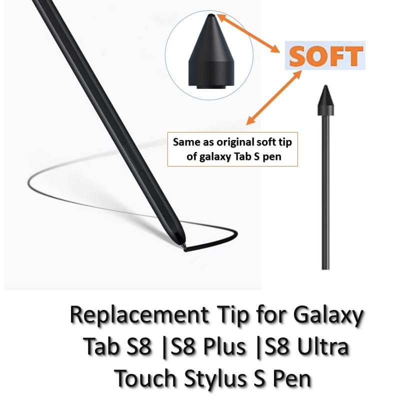 Generic - طرف ناعم بديل لقلم اس بين متوافق مع جالكسي تاب S8 | S8 بلس | S8 الترا تاتش S قلم S بطرف ناعم مع اداة ازالة مشبك واحد، شفاف، لحاسوب محمول، لسامسونج جالكسي تاب