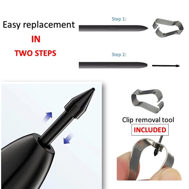- طرف ناعم لقلم S، ملمس قلم رصاص ناعم، كتابة أكثر سلاسة وسهولة الرسم، تجنب تلف شاشة التبويب. يعمل الطرف الناعم مثل الطرف الأصلي لقلم اس.