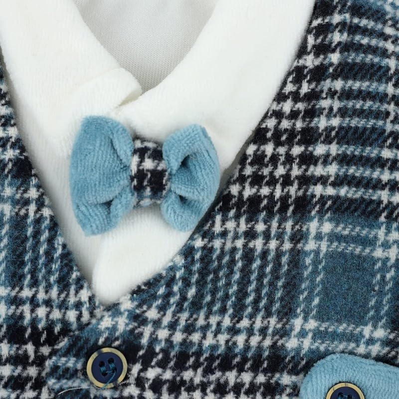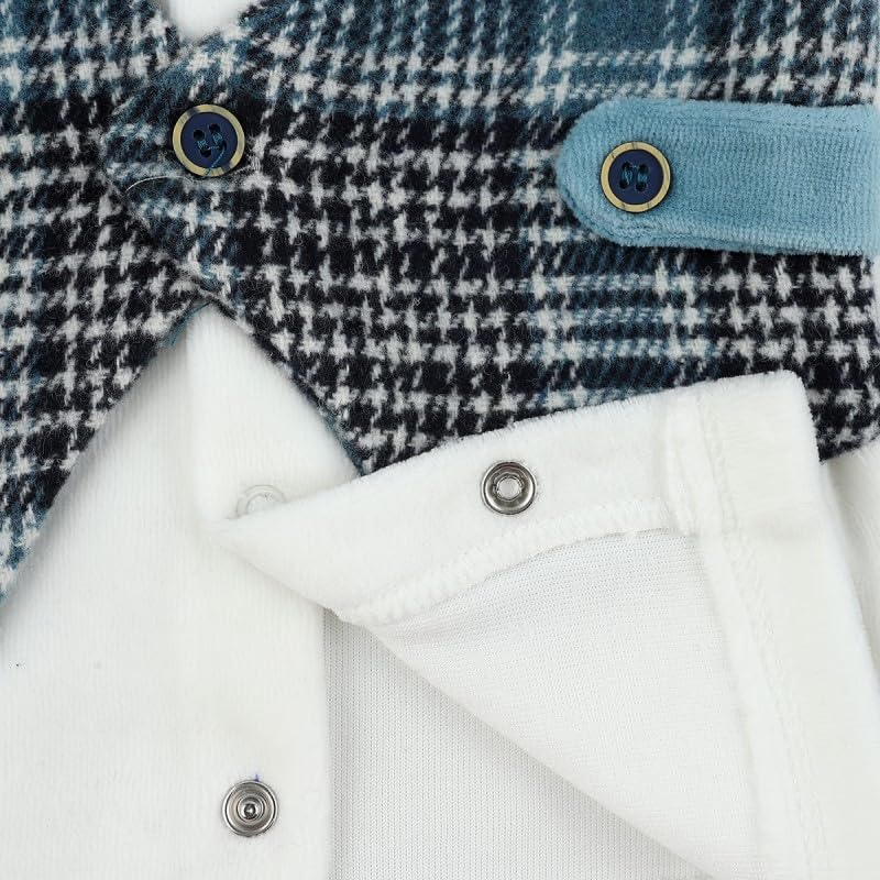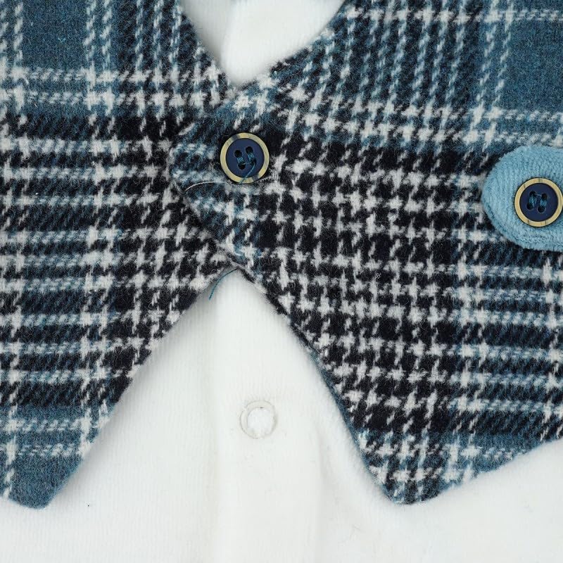 Generic - طقم قطيفة ناعم منقوش للاولاد البيبي بلون تركواز وابيض | 6-9 اشهر | فلاور لايف