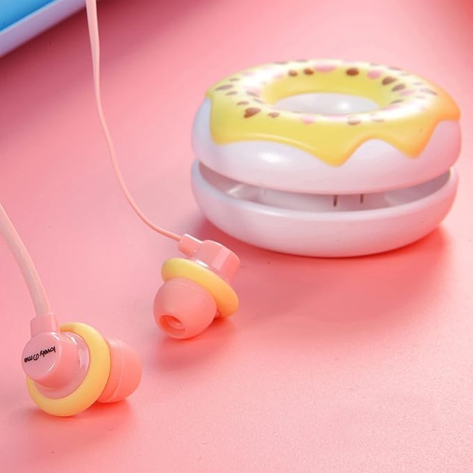 Generic - سماعات اذن ناعمة سلكية مع ميكروفون شكل دونات وتحكم في مستوى الصوت، سماعات اذن صغيرة لطيفة لهاتف ايفون 6/6 اس، هواتف اندرويد الذكية، مشغلات ام بي 5، في الاذن، ( أصفر )