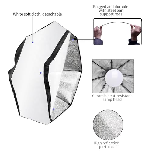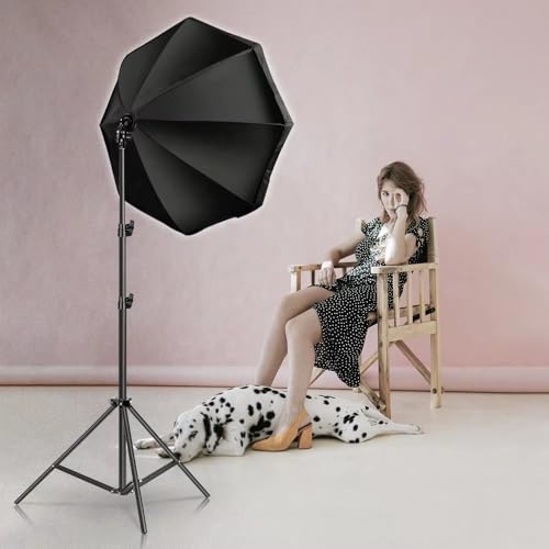 Generic - إضاءة Softbox ثماني الأضلاع للتصوير الفوتوغرافي واستوديو التصوير ,ذات إضاءة ليد سطوع عالى , مع حامل 2 متر , و لمبه اضاءة 150 واط , للتصوير الاحترافى وصناع المحتوى لخلق اضاءة طبيعيه .