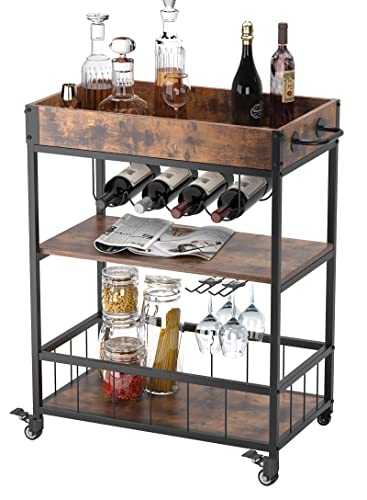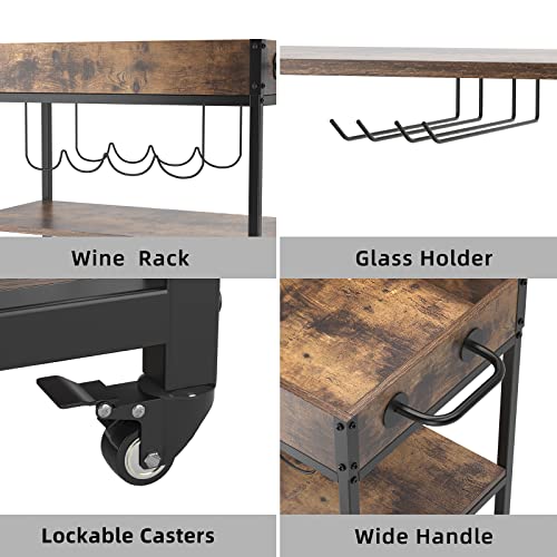 soges - عربة بار متنقلة من سوجز، عربة تقديم للمطبخ، عربة بار لتقديم الطعام في الهواء الطلق، عربة مشروبات دوارة مع حوامل زجاجات وأكواب، عربة مطبخ مع صينية تخزين قابلة للازالة