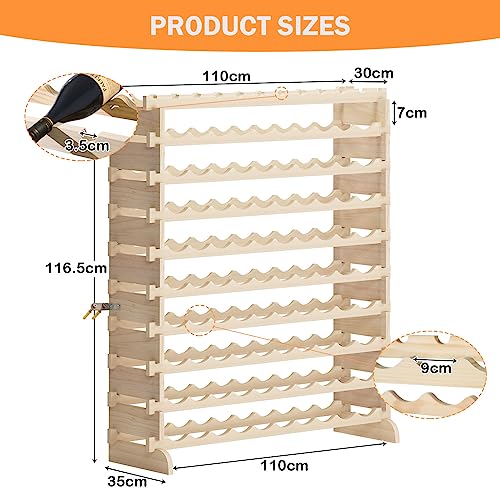sogesfurniture - سوجس فيرنيتشر رف زجاجات النبيذ مع 10 مستويات لـ 100 زجاجة، حامل خشبي للنبيذ، حامل زجاجات النبيذ للمطبخ وغرفة الطعام والبار، 110 × 30 × 116.5 سم