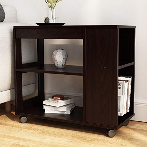 SogesPower - عربة تخزين متنقلة ومتعددة الاستخدامات من 3 طبقات وأرفف للتخزين من سوجيس باور، مناسبة للاستخدام كترابيزة بجانب السرير وترابيزة للقهوة وللكنبة ولوحدة التحكم، أسود والنت، SPSZKST-TR-B-CA