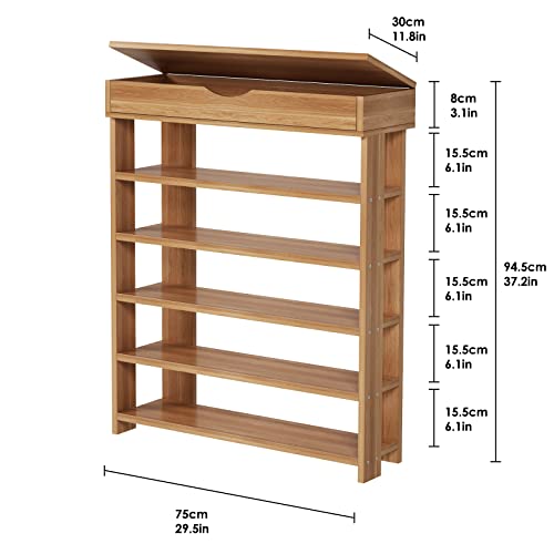 SogesPower - سوجيس باور رف احذية خشبي من 5 طبقات 29.5 انش تخزين منظم الاحذية خشب الساج SPWK-L24-NTK-CA6