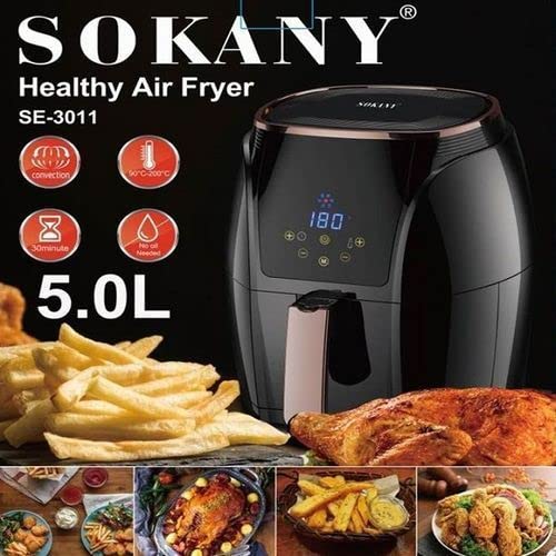 SOKANY - قلاية هوائية صحية ديجيتال من سوكاني، اسود، 5 ليتر، 1500 واط