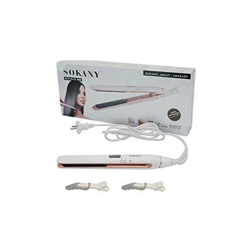 SOKANY - مكواة شعر من السيراميك موديل 8288 من سوكاني، تسخين سريع، تصل درجة الحرارة الى 750 درجة فهرنهايت، أبيض، التيتانيوم