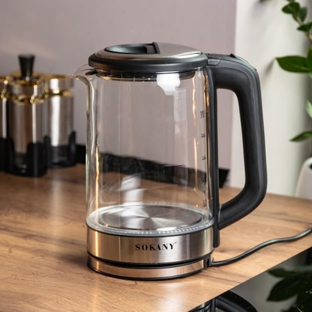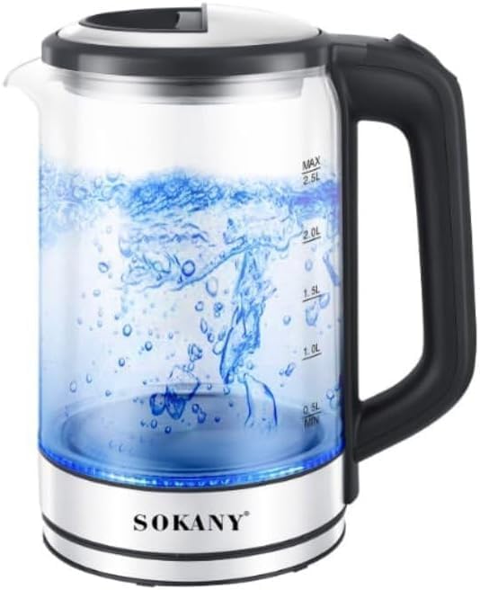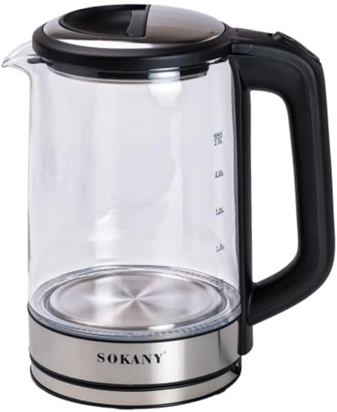 الثُريا - غلاية زجاجية كهربائية من سوكاني، سعة 2.5 لتر، 1500 وات، شفافة، موديل SK-09013