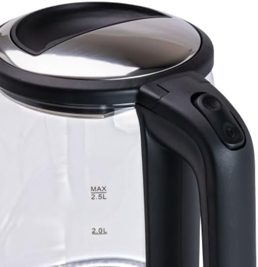 - سعة كبيرة: غلاية زجاجية سعة 2.5 لتر مثالية لتقديم أكواب متعددة، مع مؤشرات واضحة لمستوى المياه لملء دقيق