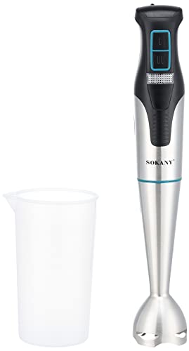 SOKANY - خلاط يدوي كهربائي ستانلس ستيل + كاب من سوكاني - SK-758 - لون اسود وفضي، 1200 واط