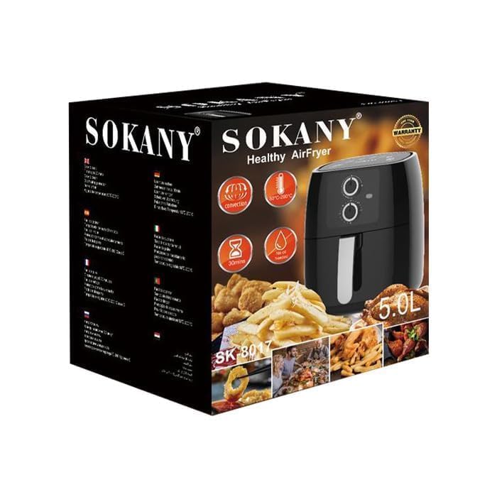 SOKANY - مقلاة هوائية اسينشيال بقدرة 1400 وات وسعة 5 ليتر وجهد كهربائي 220 فولت و50 هرتز من سوكاني موديل ، SK-8017 بلون اسود، واط