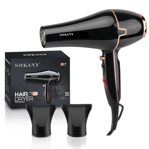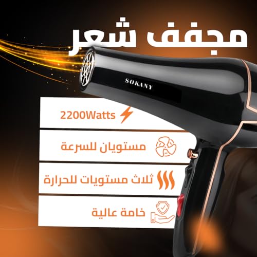 Generic - مجفف شعر بقوة 1800-2200 واط من سوكاني، تقنية العناية بالشعر، مكثفات مزدوجة التصميم - عناية احترافية في متناول يدك، بلون أسود، SK-8808