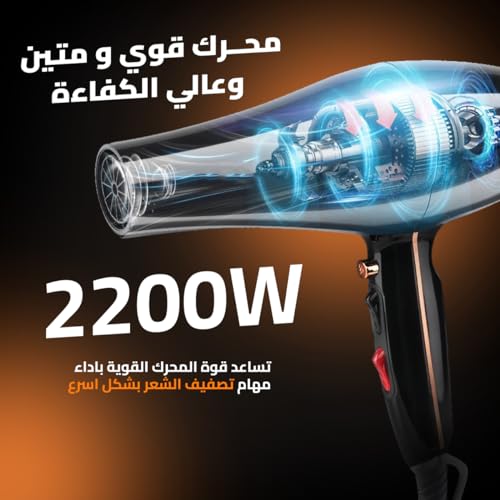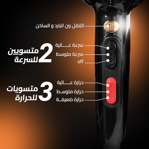 - أداء قوي: مع نطاق طاقة من 1800 إلى 2200 واط، يوفر مجفف الشعر هذا تجفيفًا عالي الأداء، مما يضمن نتائج سريعة وفعالة، مثالي للصباح المزدحم أو اللمسات الأخيرة في اللحظة.