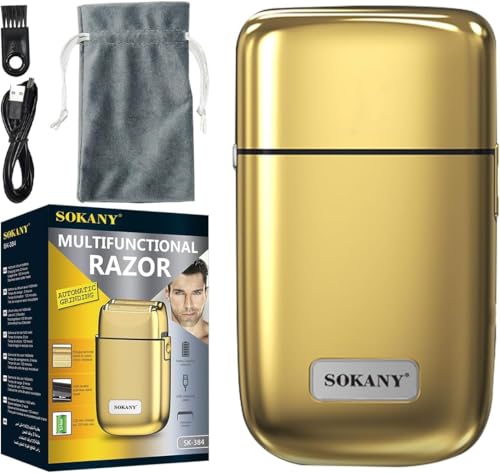 Sokany - ماكينة حلاقة وتشذيب شعر كهربائية قابلة لإعادة الشحن للرجال مع أداة تشذيب دقيقة بمنفذ USB متعددة الوظائف لتشذيب اللحية SK-384 من سوكاني