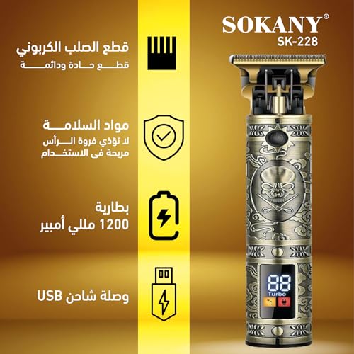 SOKANY - ماكينة حلاقة وتشذيب اللحية بدون أسلاك للرجال من سوكاني، شاشة LCD قابلة لإعادة الشحن، شفرات دقيقة من الستانلس ستيل، مجموعة حلاقة تدوم طويلاً، SK-228