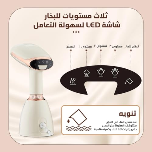 - 💧 خزان مياه كبير 260 مل - يسمح بالتبخير المستمر دون إعادة تعبئة متكررة، مثالي للملابس المتعددة.