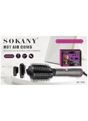 Sokany - فرشاة تمشيط تعمل بالهواء الساخن، فرشاة مجفف شعر احترافية، 1600 وات، التجفيف بالهواء وتمشيط الشعر، 3 إعدادات لدرجة الحرارة مع رؤوس فرشاة قابلة للتبديل من سوكاني، موديل SK-1934، لون أسود