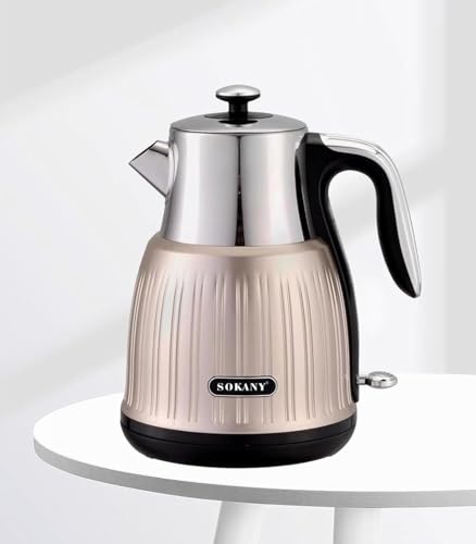 SOKANY - غلاية كهربائية من سوكاني بلون فضي، مصنوعة من الستانلس ستيل، مع إيقاف تلقائي وحماية ضد الغليان الجاف وصب لاسلكي، سعة 1.6 لتر