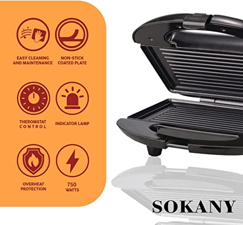 SOKANY - ماكينة صنع سندوتشات عالية الجودة من سوكاني بخاصية التسخين السريع مع مصباح ليد بقدرة 750 وات موديل KJ-105