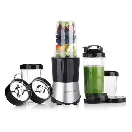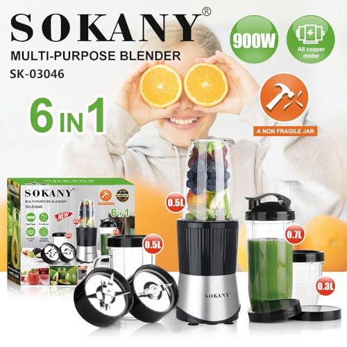 SOKANY - سوكاني خلاط عصارة متعدد الاغراض 6 في 1 بقدرة 900 واط SK-03046، اسود/رمادي