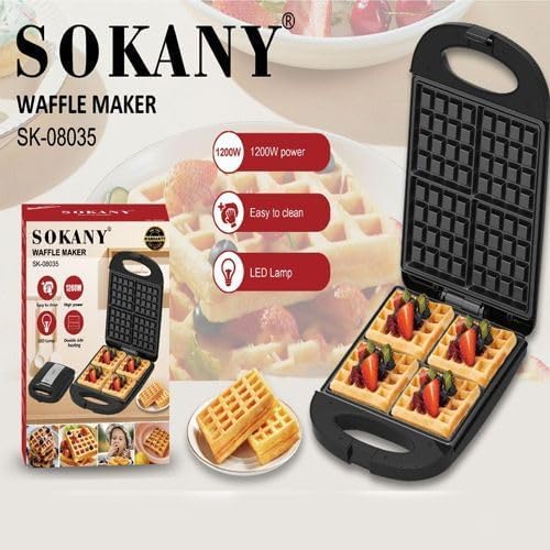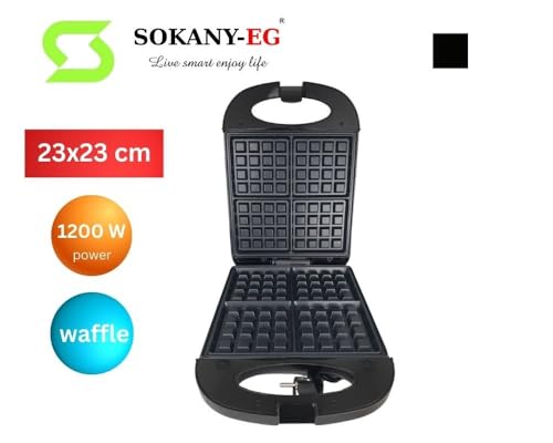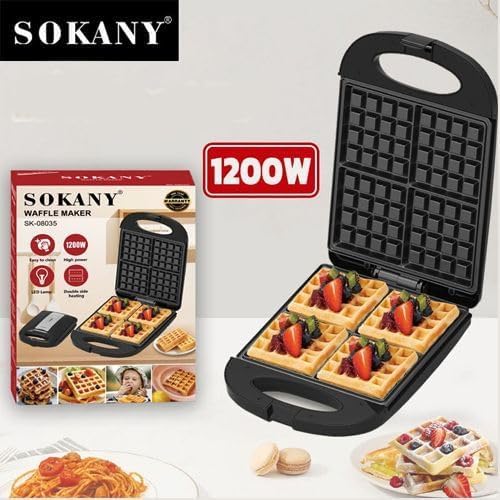 SOKANY - ماكينة صنع الوافل طراز SK-08035 من سوكاني، 4 قطع، 1200 وات - أسود