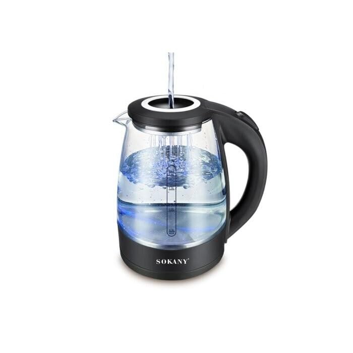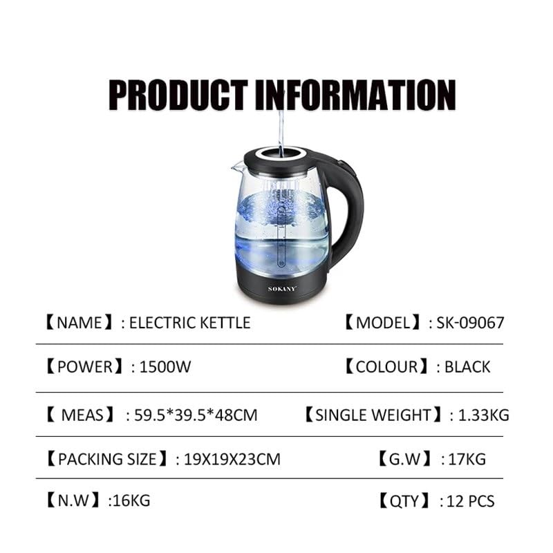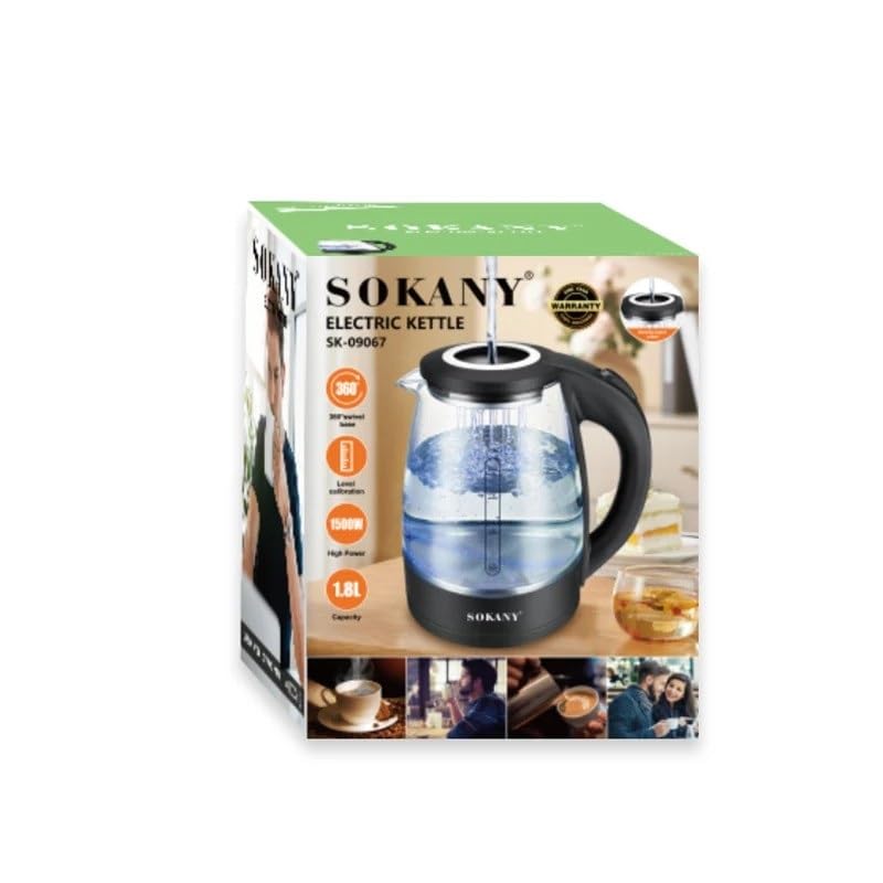 SOKANY - غلاية كهربائية من زجاج البوروسيليكات SK-09067 بقدرة 1500 وات وسعة 1.8 لتر مع لوح تسخين من الفولاذ المقاوم للصدأ من سوكاني