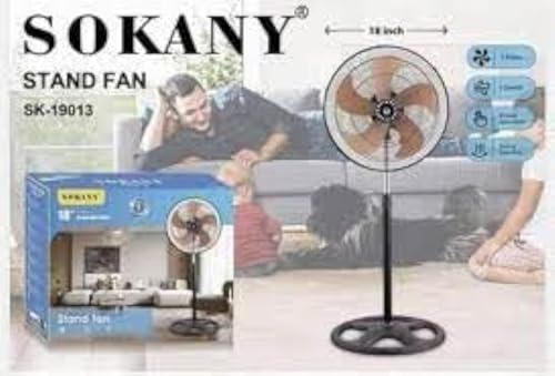 SOKANY - مروحة استاند 18 بوصة من سوكاني، بـ 3 سرعات و5 شفرات، موديل SK-19013، متعدد الألوان