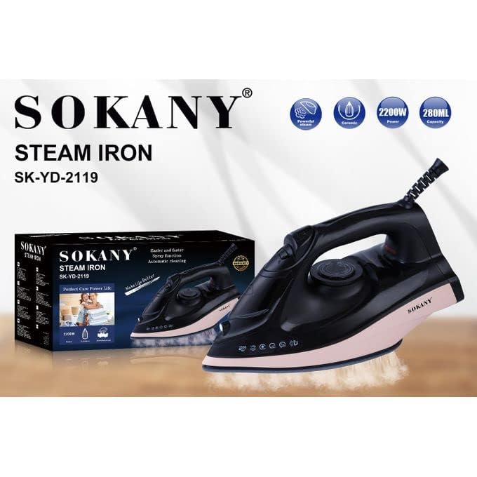 SOKANY - مكواة بخار بقاعدة سيراميك 2200 وات من سوكاني (SK-YD-2119)