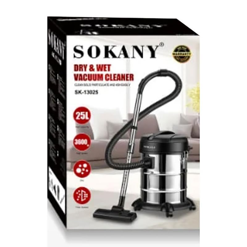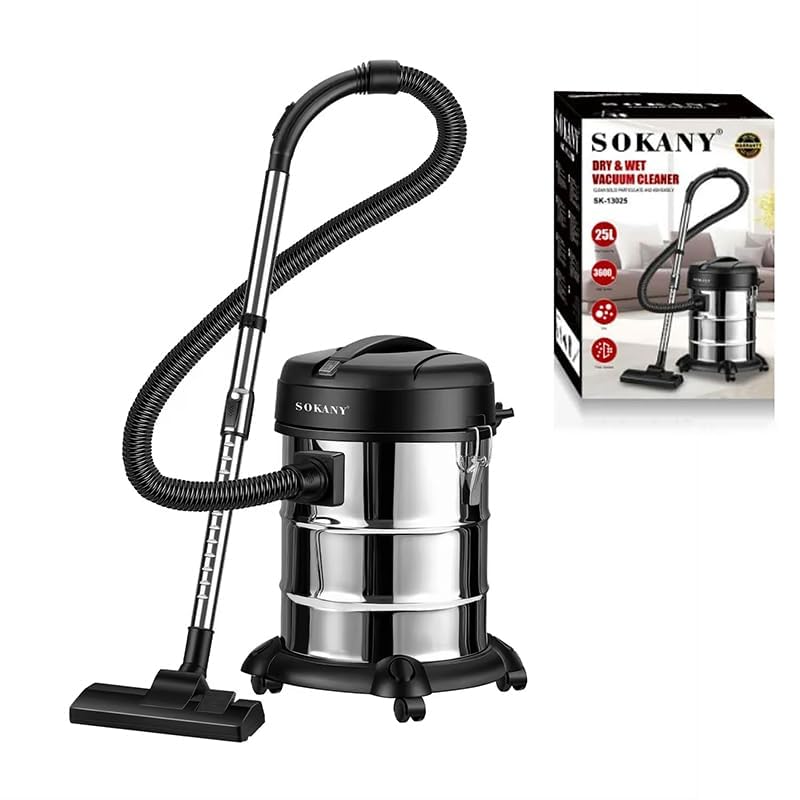 SOKANY - مكنسة كهربائية للغبار + اسطوانة ماء سعة 25 لتر من سوكاني، 3600 وات، SK-13025، فضي