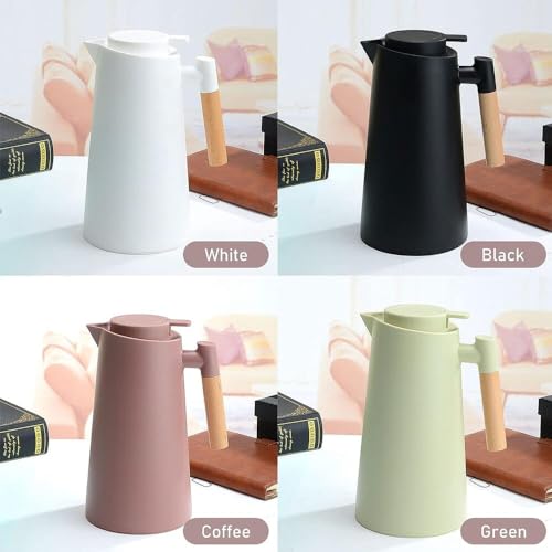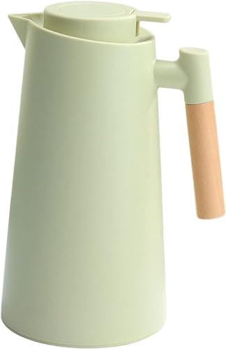 SOKO - ترمس حراري سعة 1 لتر للقهوة والشاي بيد خشبية من سوكو، يحافظ على الحرارة لمدة 24 ساعة، ترمس مزدوج الجدار معزول بتفريغ الهواء / إبريق / موزع للمشروبات الساخنة والباردة مع مقبض خشبي، LS-057، أخضر فاتح