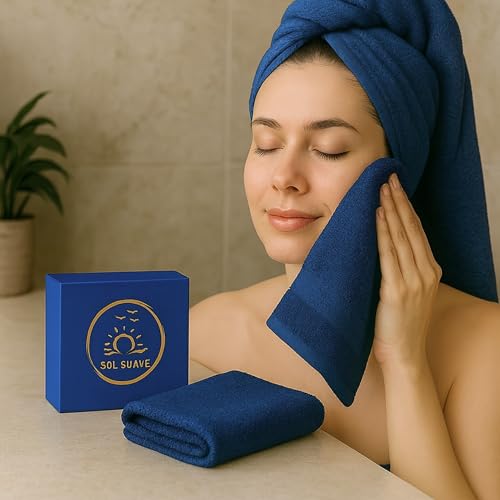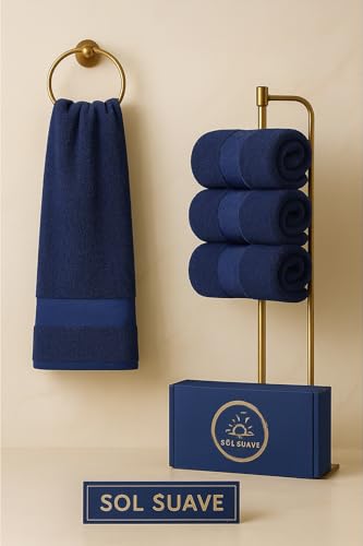 Sol Suave - فوطة حمام من القطن المصري فائقة النعومة وعالية الامتصاص وسريعة الجفاف من سول سواف، 1 قطعة (كحلي، 1.4 م × 70 سم)