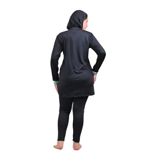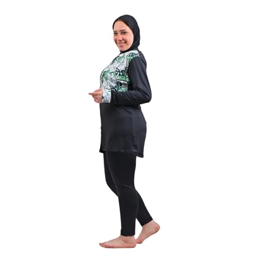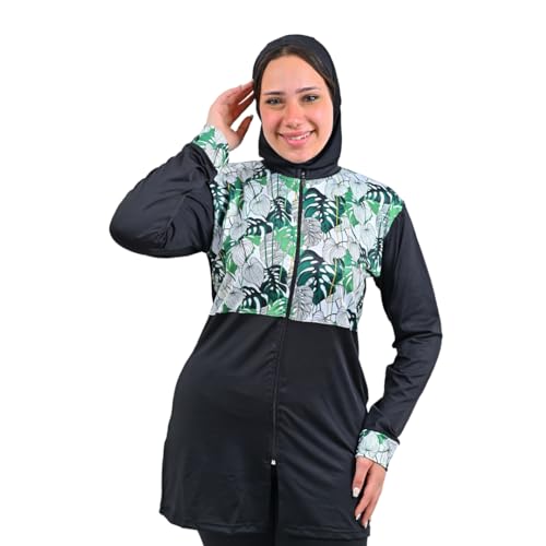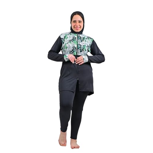 Sol Suave - ملابس سباحة اسلامية محتشمة للنساء من سول سواف مع غطاء كامل حجاب واكمام طويلة سحاب وبنطلون طويل بوركيني 3 قطع بدلة بطباعة شجر اسود M
