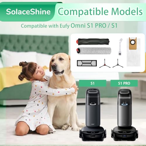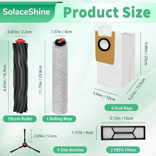 SolaceShine - قطع غيار لمكنسة يوفي S1 برو اومني/S1 اومني من سولاسشاين مع فرشاة رئيسية، 1 ممسحة دوارة، 4 اكياس غبار، 2 فلتر هيبا، 4 فرش جانبية، 13 قطعة