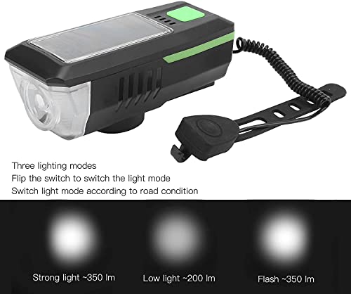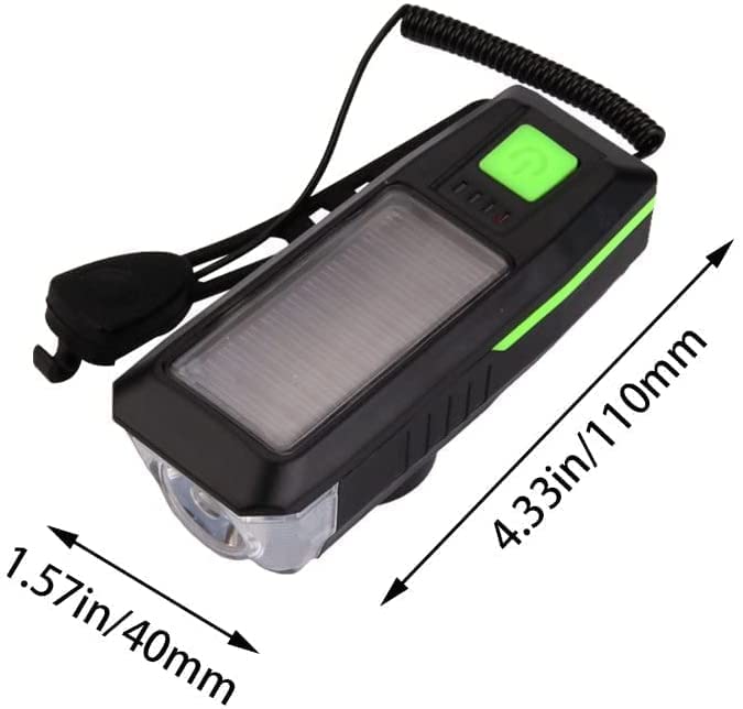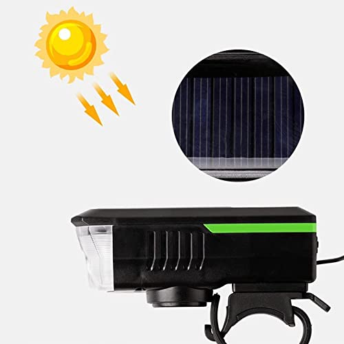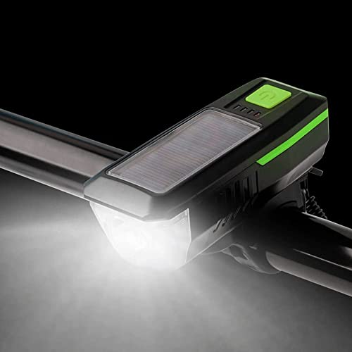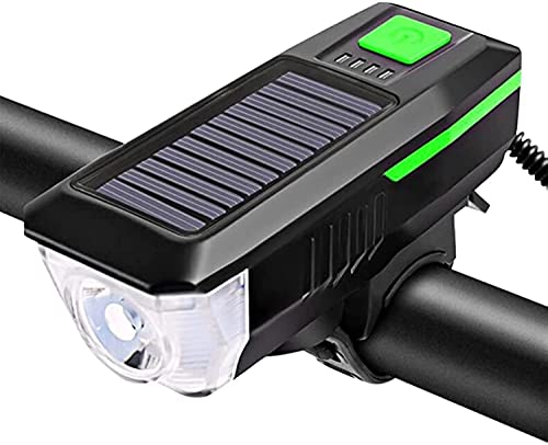 KATGROCHIR - مصابيح دراجة تعمل بالطاقة الشمسية، مصباح دراجة أمامي مع زمارة بعدد 3 أوضاع، طاقة شمسية وشحن USB مقاومة للماء IPX4 للدراجات الجبلية ودراجات الطرق وركوب الدراجات الليلية والتخييم وتحذيرات السلامة، أزرق