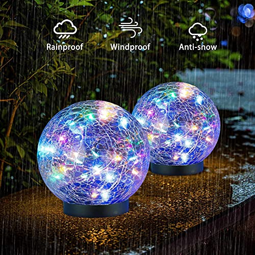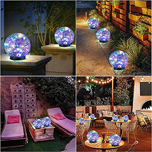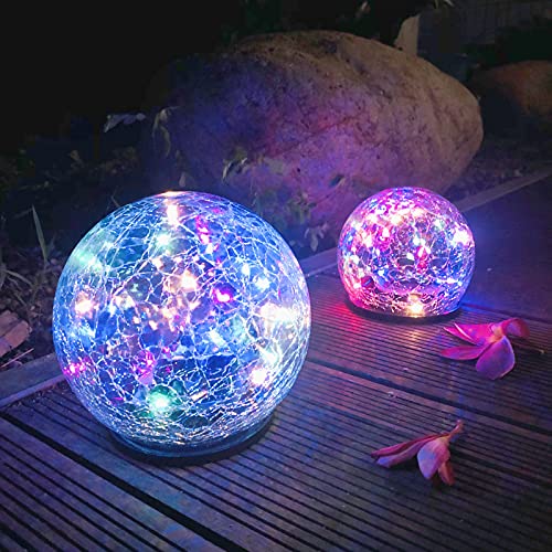 Sezrgiu - مصباح ارضي على شكل كرة زجاجية تعمل بالطاقة الشمسية، مصباح LED كروي زجاجي للعشب، تشغيل/ايقاف تلقائي، مصباح ارضي يعمل بالطاقة الشمسية مقاوم للماء للحديقة الخارجية والفناء (كبير، متعدد الالوان)