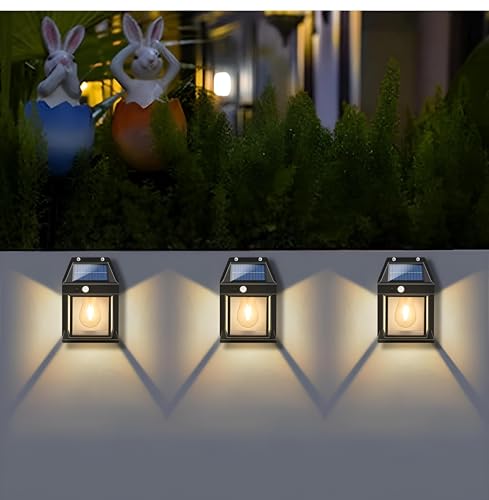 Generic - أضواء سياج شمسية قوية مع مستشعر حركة وثلاثة أوضاع إضاءة للتشغيل المستمر من الغسق إلى الفجر، وتصميم مقاوم للماء IP65، وسطوع 600 لومن، ومناسب للاستخدام في الشرفة الخارجية والجدران (3 مصباح)