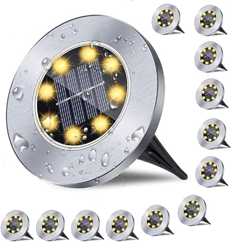 Generic - مصابيح أرضية تعمل بالطاقة الشمسية، مصابيح LED غارقة مقاومة للماء مع تصنيف IP65 لمقاومة الماء والغبار، كاملة مع مستشعر الضوء لإضاءة الحديقة والفناء والمسار 12، فضى، معدن، بلاستيك