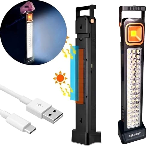 Generic - مصباح طوارئ LED يعمل بالطاقة الشمسية - 48 مصباح LED، بطارية قابلة لاعادة الشحن 2400mAh، 5 اوضاع سطوع، مقبض قابل للتعديل 320 درجة للتخييم وانقطاع التيار الكهربائي والملاحة الآمنة