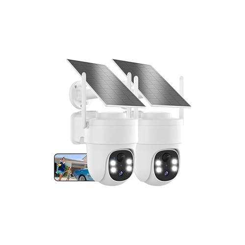 Generic - كاميرات مراقبة تعمل بالطاقة الشمسية، نظام مراقبة خارجي لاسلكي مع كاميرات مزدوجة، لوحة شمسية، كشف الحركة، رؤية ليلية، مراقبة الهواتف الذكية