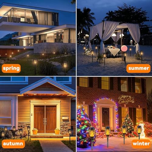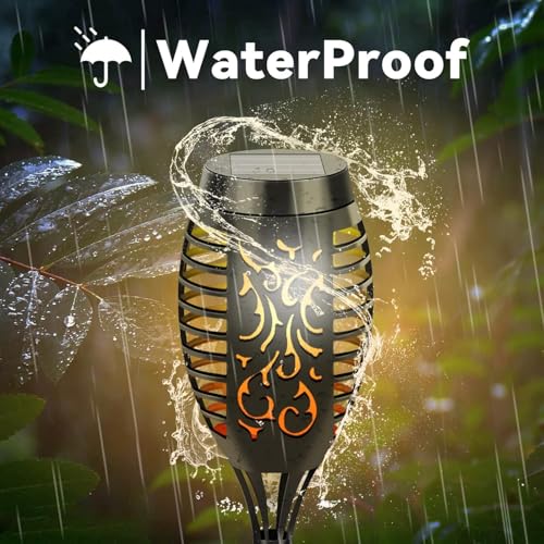 Generic - مصباح يدوي يعمل بالطاقة الشمسية مع لهب وامض مصابيح تعمل في الهواء الطلق للحديقة والممرات والفناء والممر قطعتان قطعة كبيرة وقطعة متوسطة أحمر