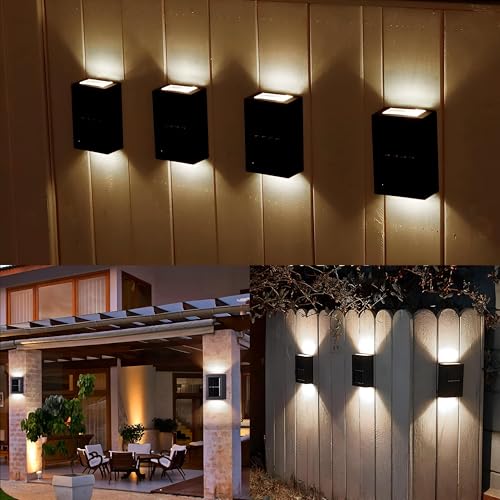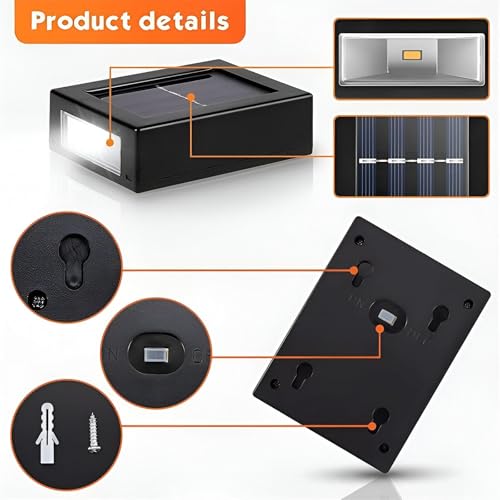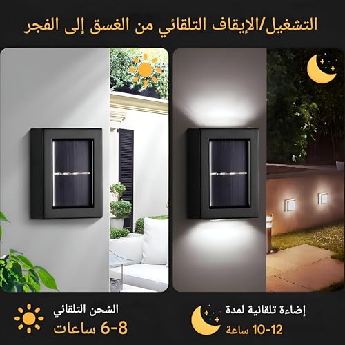 Generic - مصباح حائطي يعمل بالطاقة الشمسية في الهواء الطلق - ضوء LED يعمل بالطاقة الشمسية، تصميم مقاوم للماء للحدائق والأفنية والشرفات، يتميز بوظيفة التشغيل/الإيقاف التلقائي، إضاءة سياج شمسية موفرة للطاقة لمنزل