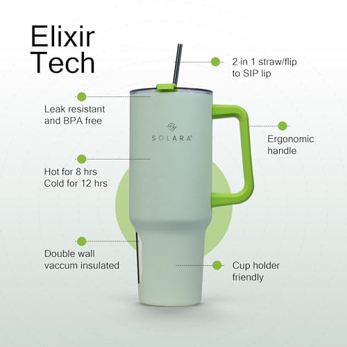 SOLARA - SOLARA Elixir 40oz Tumbler for Hot and Cold, 1200ml Insulated Tumbler with Lid, Stainless Steel Tumbler with Straw, Travel Tumbler, Coffee Mug for Office, Home, 1200ml, 40oz, Lemon Drop