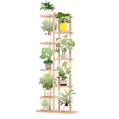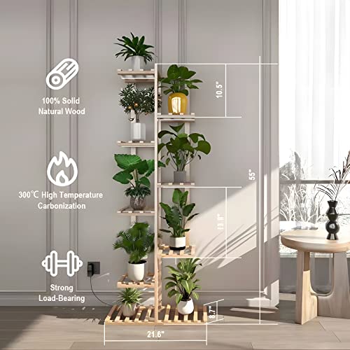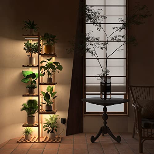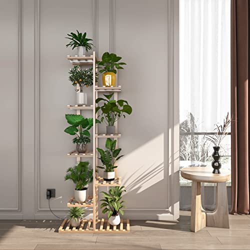 Solatmos - حامل نباتات خشب بأضواء من سولاتموس، حامل لنمو النباتات للاستخدام الداخلي والخارجي، رف نباتات بتصميم زاوية للزهور مناسب لغرفة المعيشة والفناء والحديقة والشرفة (خشب، 8 طوابق)