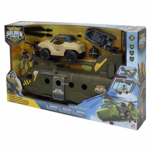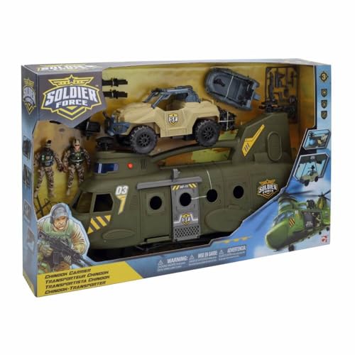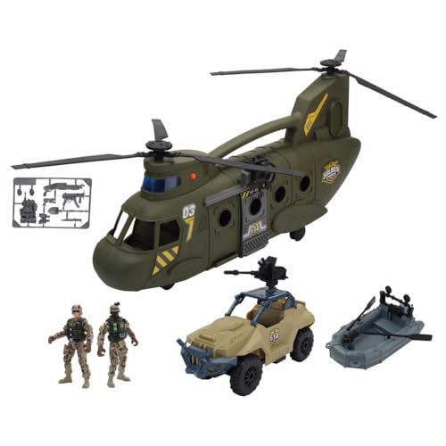 GTG TOYS - طائرة هليكوبتر حربية كبيرة من سولدر نور مع دبابة، جنديين ورشاش مائي، أسلحة بإضاءة ليد متعددة وصوت قوي من جي تي جي تويز