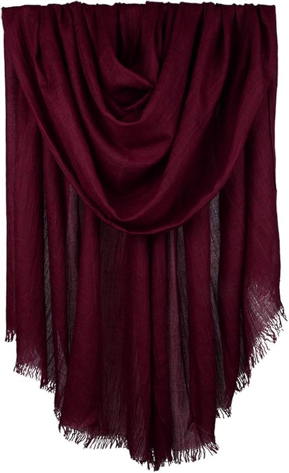 Generic - حجاب للنساء من الكتان التركي بألوان سادة مع حواف مهدبة لون نبيتي