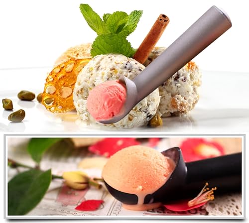 - يضمن الإغلاق المضاد للتجمد داخل المقبض انزلاق الثلج بسلاسة على السطح غير اللاصق، بينما تم تصميم الرأس على شكل رمح لقطع الثلج الصلب الصخري دون عناء، مما يتيح مغارف دقيقة وجميلة للمخاريط والفطائر والوافل والبراونيز والمثلجات والكعك.